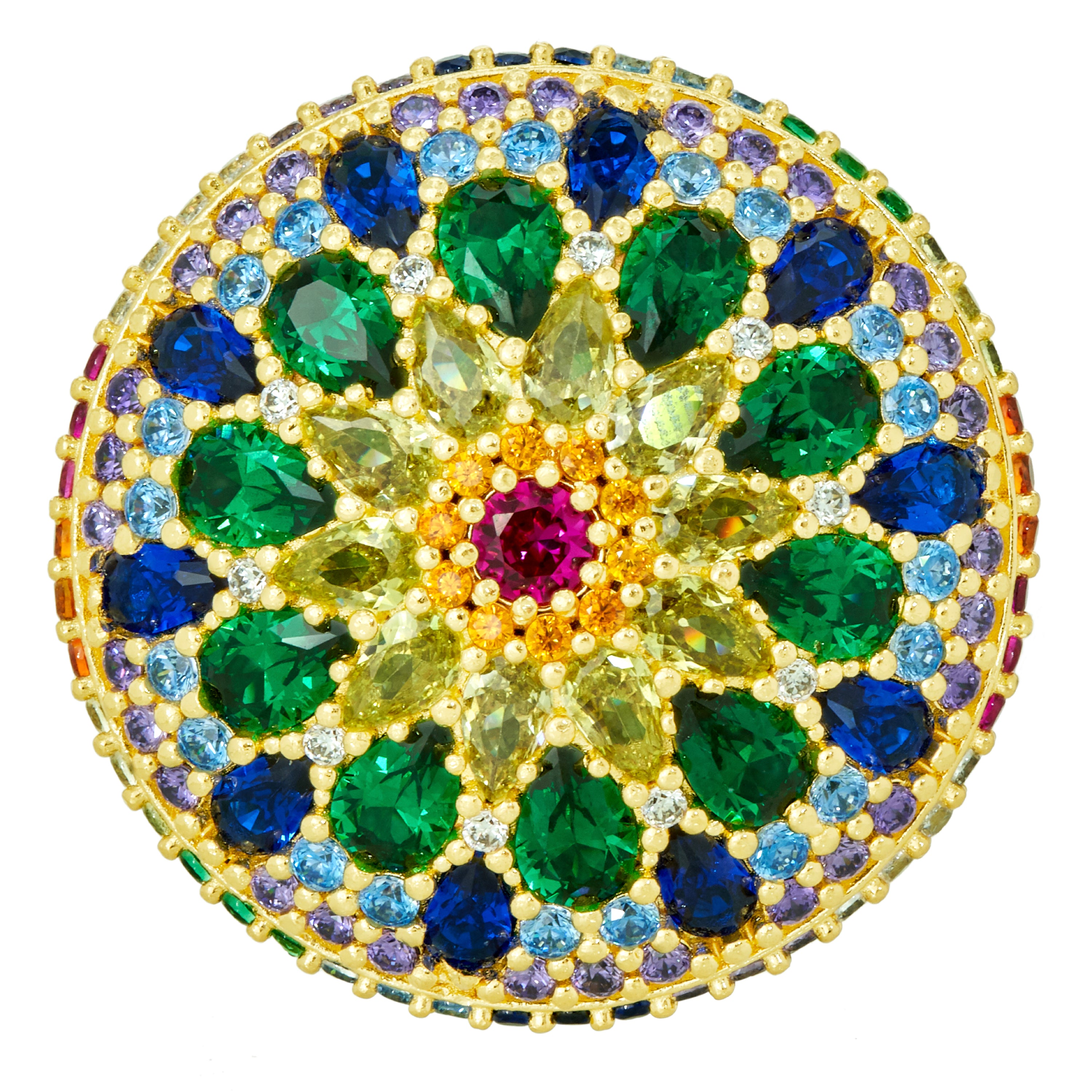 Each hexagonal weave of reverse-set stones is ultralight and illuminates like your favorite stained-glass windows.