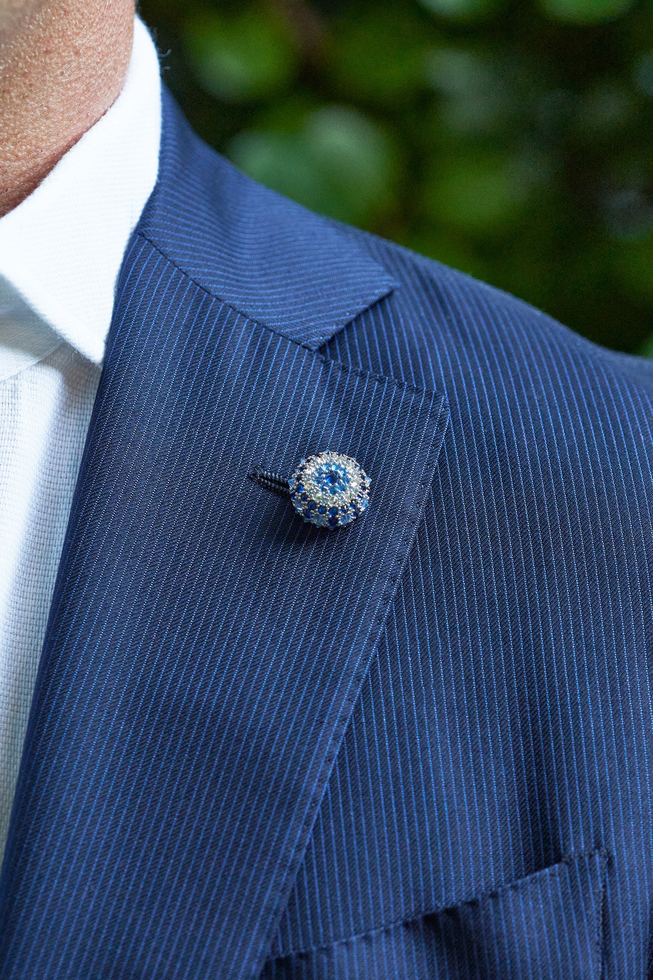 Second, I needed a way to attach the pins to my blazers and suits without damaging them. I love my clothing too much, and I plan on wearing these jackets for the rest of my life. So, I created a long pin style that could be placed directly through my (hand-stitched if possible) lapel buttonhole, and then secured on the back of my lapel invisibly. Even though I use the pin to pierce the fabric on the back of the lapel to keep it perfectly in place, it usually finds its way between the warp and weft, and I can easily tease it out if I ever need to.
