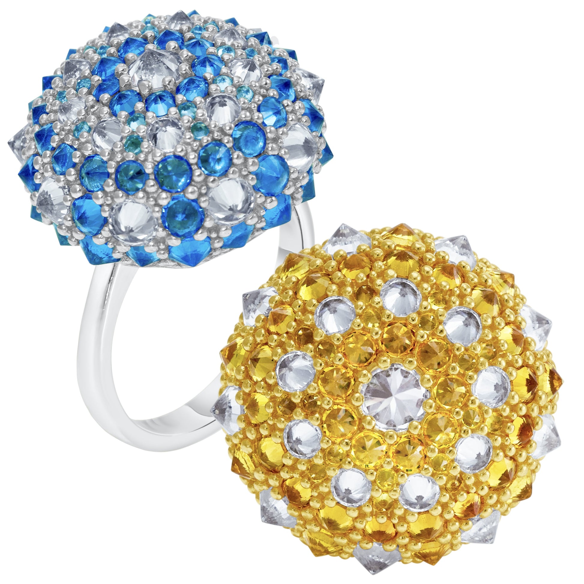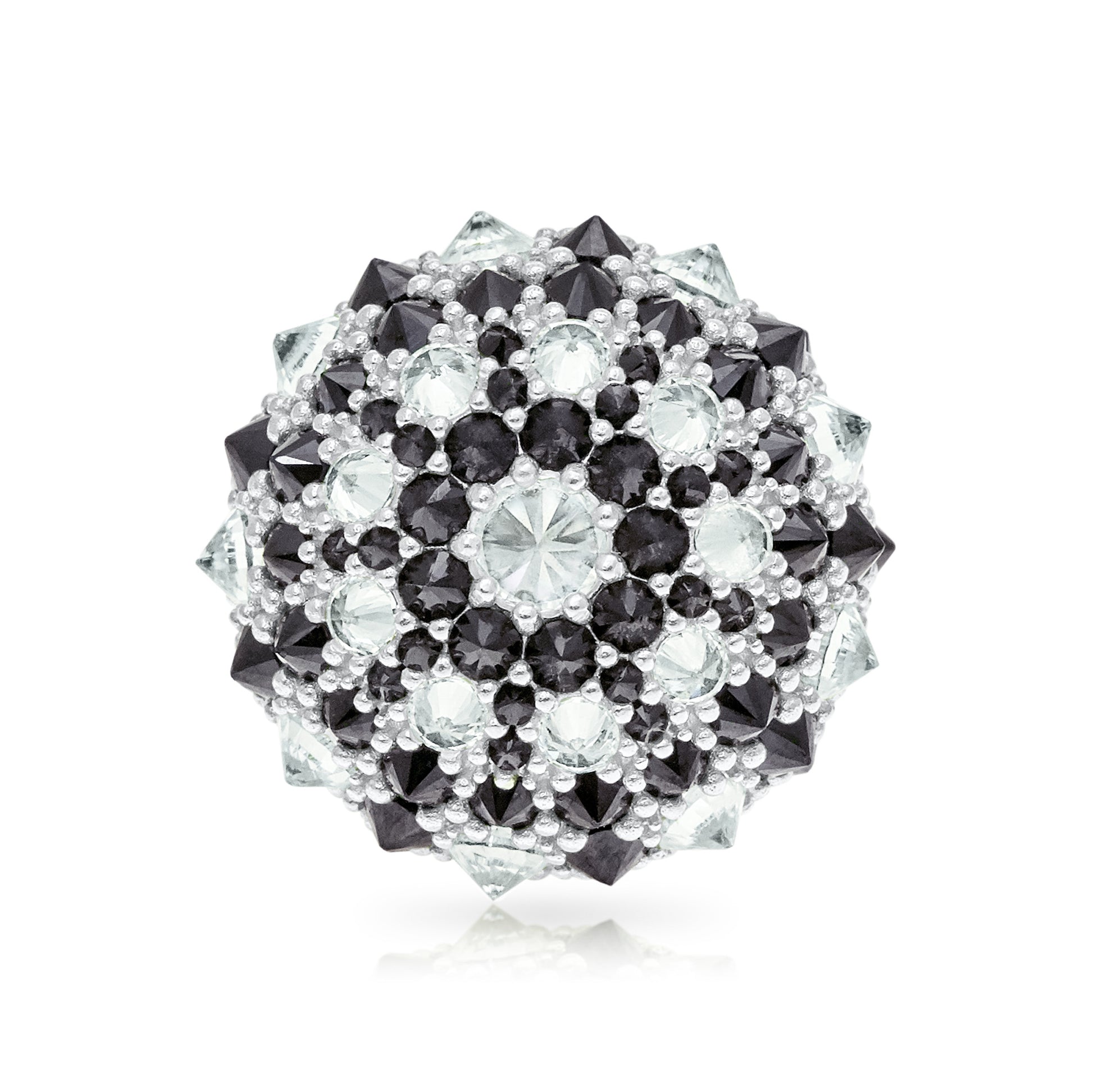 Each Pharaoun piece is designed by me, Sergio, and handmade in my workshop of sterling silver with manmade cubic zirconia stones. My yellow gold, pink gold, and black rhodium pieces are additionally plated in 22 karat yellow gold, 18 karat rose gold, and black rhodium respectively.
