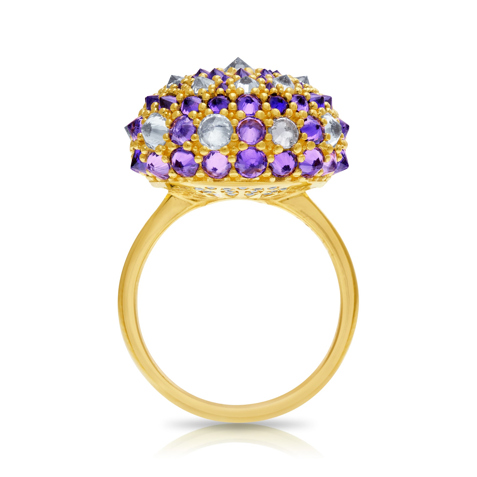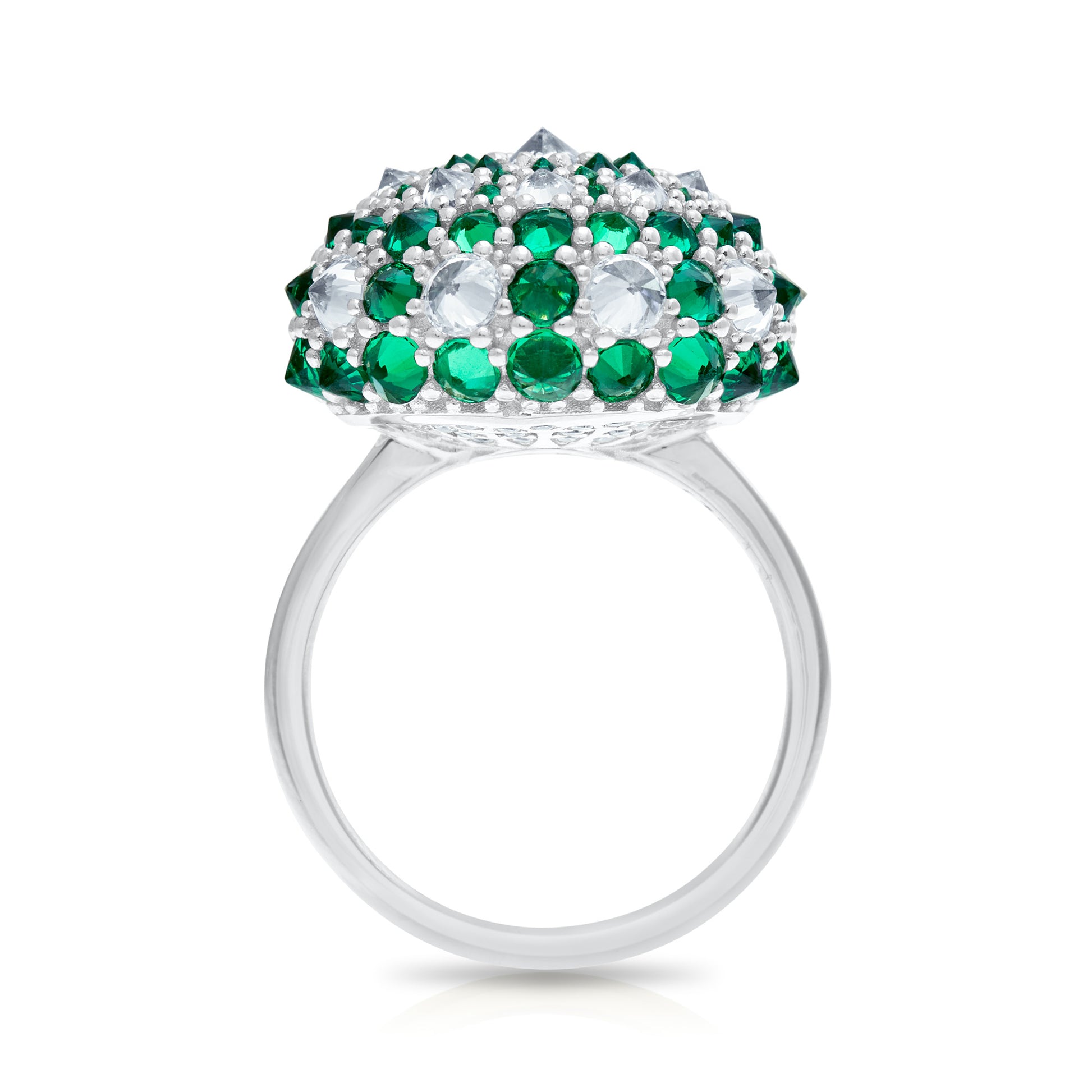 You might think I am completely irreverent for turning each of the stones upside down and reverse-setting them for this design, but in the process, I was forced to create a new geometry to support the unfamiliar reflections of these typically hidden facets, which I believe led me to a complete design that feels perfectly classical.