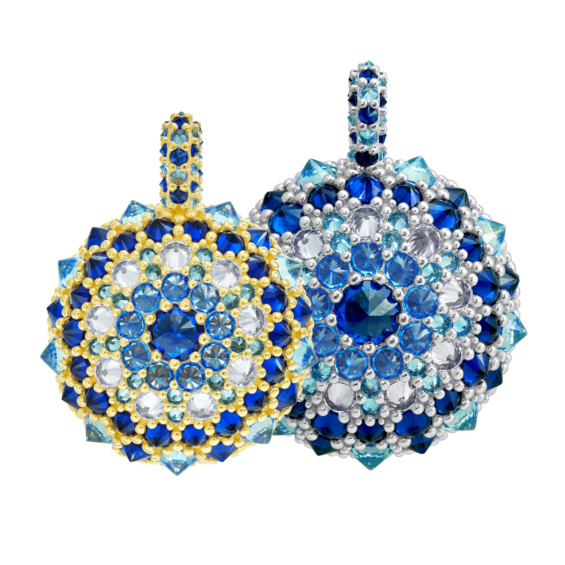 Each Pharaoun piece is designed by me, Sergio, and handmade in my workshop of sterling silver with manmade cubic zirconia stones. My yellow gold, pink gold, and black rhodium pieces are additionally plated in 22 karat yellow gold, 18 karat rose gold, and black rhodium respectively.