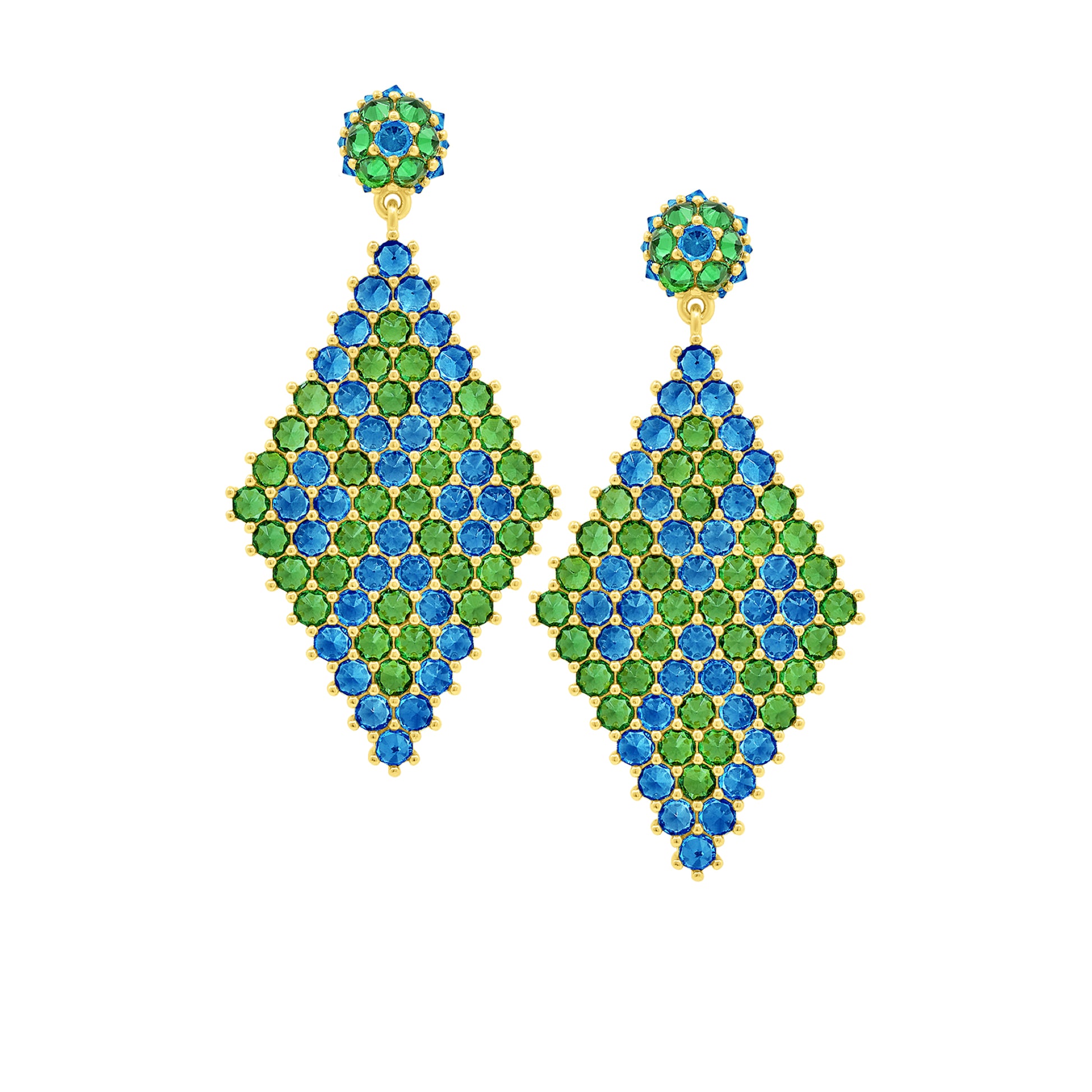 Donna Marquesa Cocktail Earrings - Green & Aqua - Gold