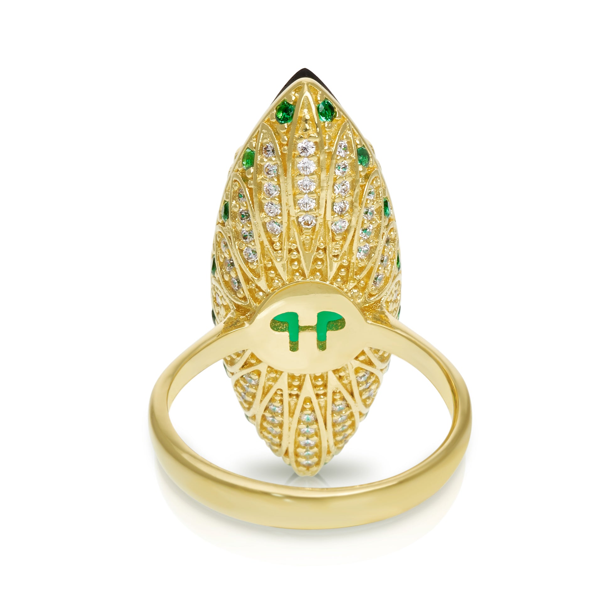 Leading with a large stone, but followed with hidden jewels in the back, this ring is fun and elegant. Many women are stacking this ring in different shapes and colors, and you can find your own special combination.