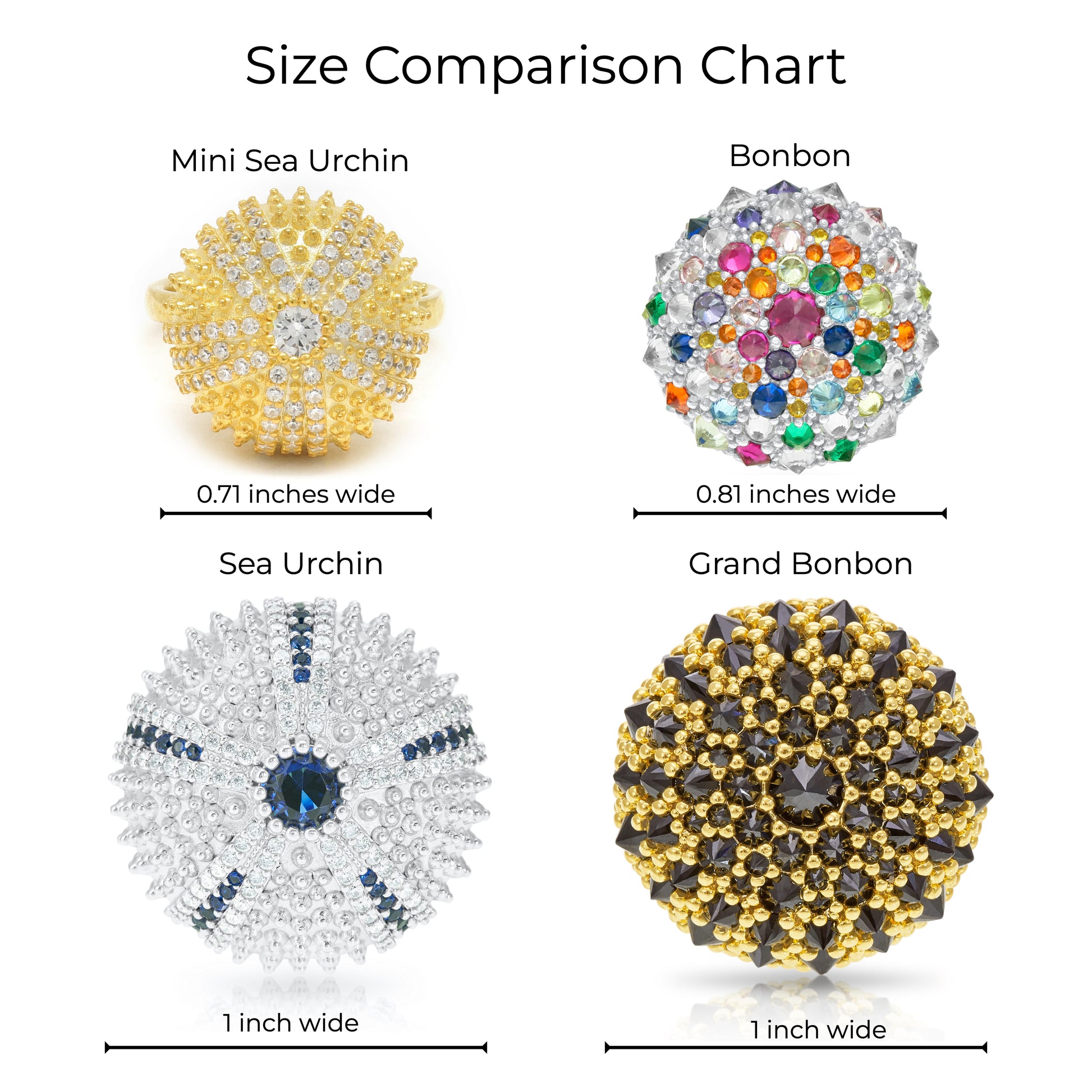 Available in full size and mini, some women are stacking them. I would recommend you get two different colors for a bit more complexity if you choose to stack them, but find your own combination. I have one friend who wears three full size urchins on the same hand and rocks them.