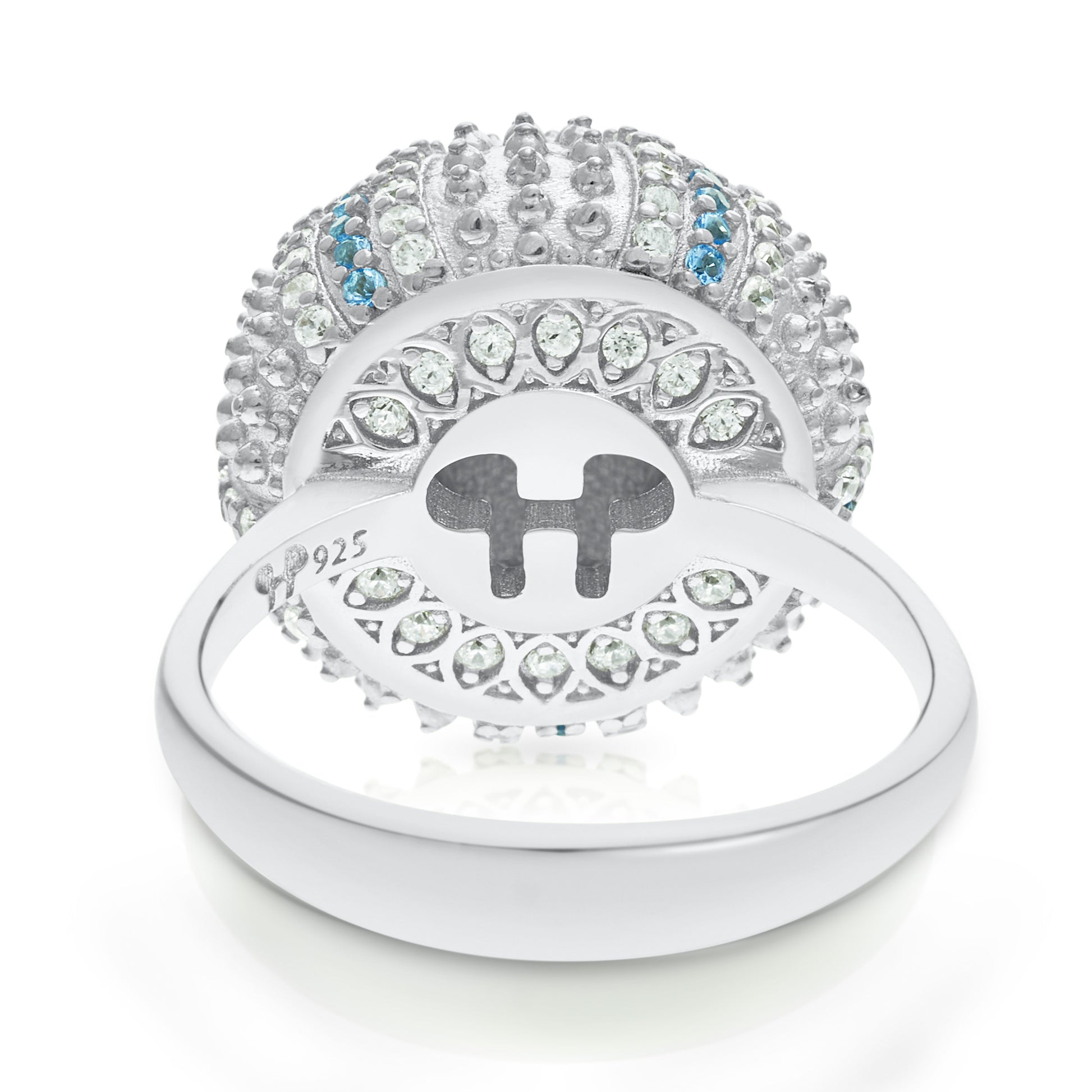 Mini Sea Urchin Cocktail Ring - Aqua - Silver