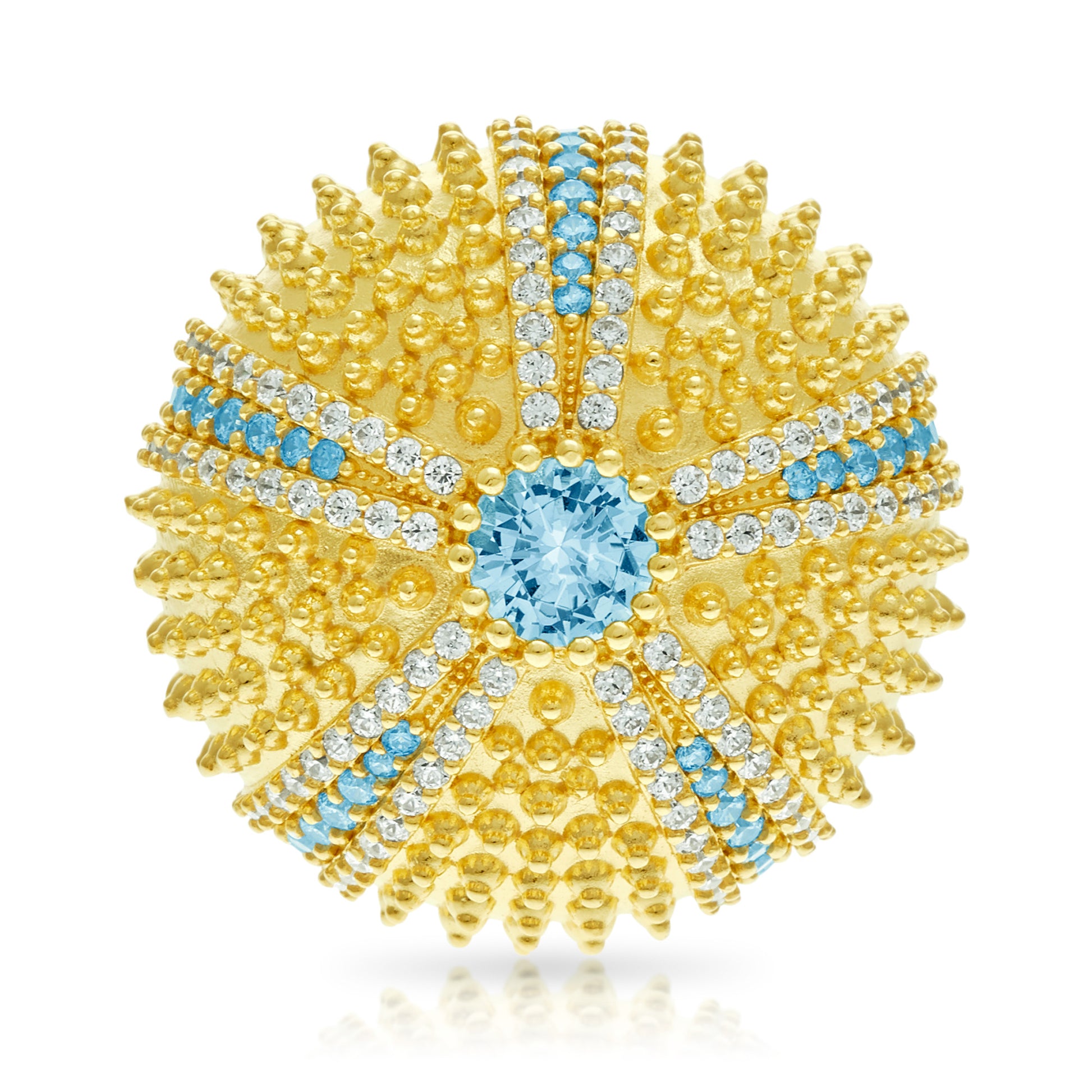 Sea Urchin Cocktail Ring - Aqua - Gold