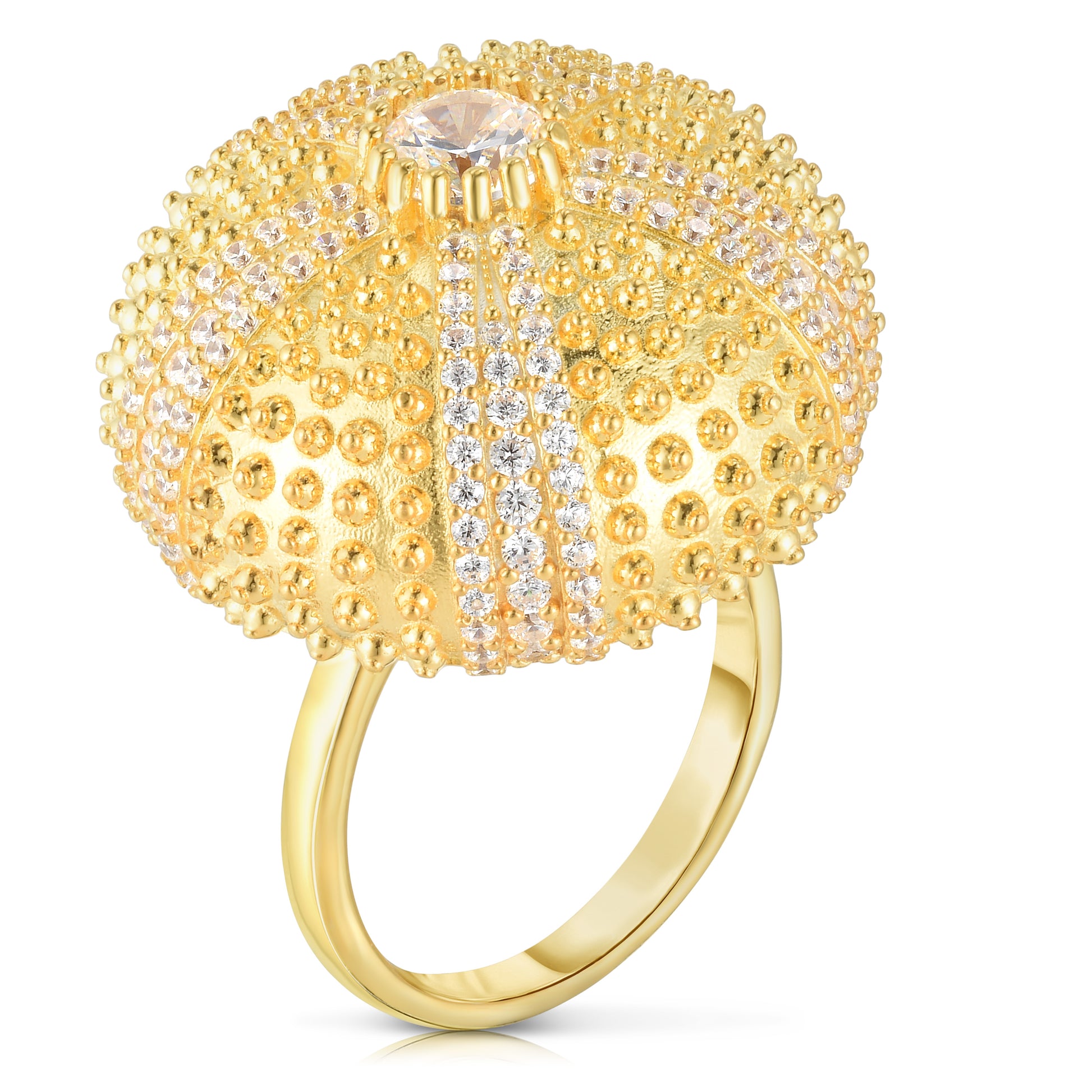Even though the inspiration for this ring comes directly from nature, I tried to abstract the design to make it iconic.  I think there is a tremendous amount of beauty that can be captured with just gold and stones, and even my friends who have never seen a sea urchin skeleton love this design.